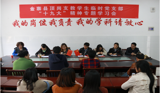 下午,党员师生驱车赶往鄂豫皖交界的汤汇镇,看望在那里坚守的顶岗支教员工,并参加了金寨县顶岗支教员工党员临时党支部的组织生活会。听取了顶岗支教工作的开展情况和临时党支部建设情况,为三位党员同学送去了新党章、党徽和十九大精神辅导读物,党员教师和支教员工一起开展了现场教学活动。