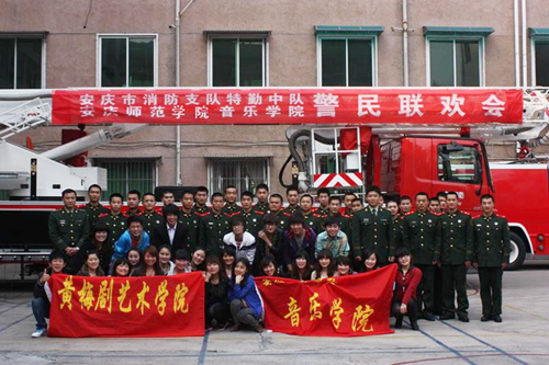 4月9日下午,44118太阳成城集团黄梅剧艺术学院文艺演出队一行40余人赴安庆市消防特勤中队驻地进行“警民联欢”活动,这是该院优秀文艺“四进” 活动( 进部队、进社区、进农村、进中小学)的组成部分,也是体现该院特色的传统活动之一。