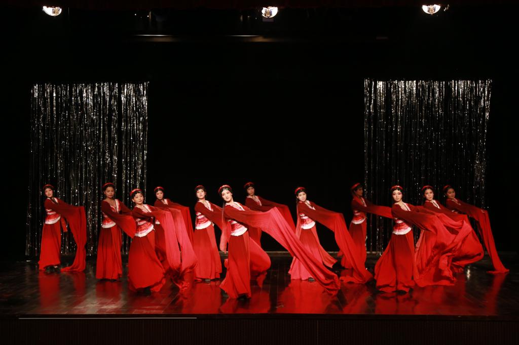 展现黄梅专业基本功的舞蹈《袖舞翩迁》气势恢宏,给现场观众带来视觉冲击。晚会节目丰富,以折子戏为主打,黄梅戏表演专业员工精彩的表演展示了她们的专业基本功,博得了现场的阵阵掌声。“我非常喜欢《袖舞翩跹》这个舞蹈,显著的民族特色是中国文化的自信。”音乐学专业2017级的腾亮说。