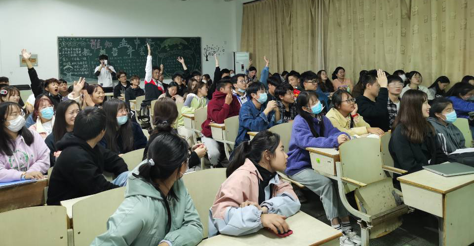 为进一步引领同学们了解四史,感受四史,贯彻落实习近平新时代中国特色社会主义思想,学习红色历史,弘扬红色精神。在每一个主题解说完毕后,都会进行一次“四史”知识问答环节,学院为此精心准备了小礼品。在问答过程中,同学们踊跃发言,积极互动,现场的抢答氛围感染了每一位参会人员。