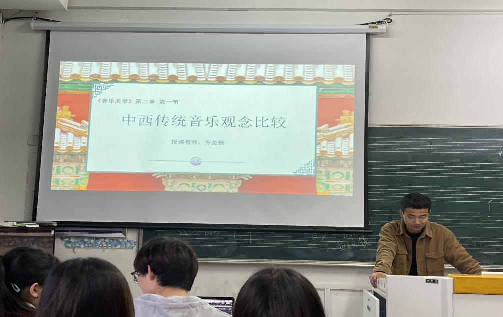 比赛开始,两位参赛教师进行授课,李宗旺以数码音乐制作课程中的《儿童音乐风格编配》为题,从分析儿童音乐的风格特点、选用合适的伴奏音型、为旋律编配和弦等方面展开教学。方尧杨以音乐美学课程中的《中西传统音乐观念比较》为题,在教学过程中,比较了中西传统音乐主题、思维与哲学基础等方面的差异。随后,教研室老师从课程思政的角度,分别对两位参赛教师的教学设计指出不足,并提出中肯的改进意见。老师们一致认为教学设计应紧扣课程思政的主题,思政目标要明确,举例要典型,教学手段要更新,还需把握好课堂时间,活跃课堂气氛。教研室主任彭传山分享了自己参赛的宝贵经验,同时,鼓励参赛教师加强思政理论学习,多磨课,多看优质课。最终,选出李宗旺参加学院决赛。