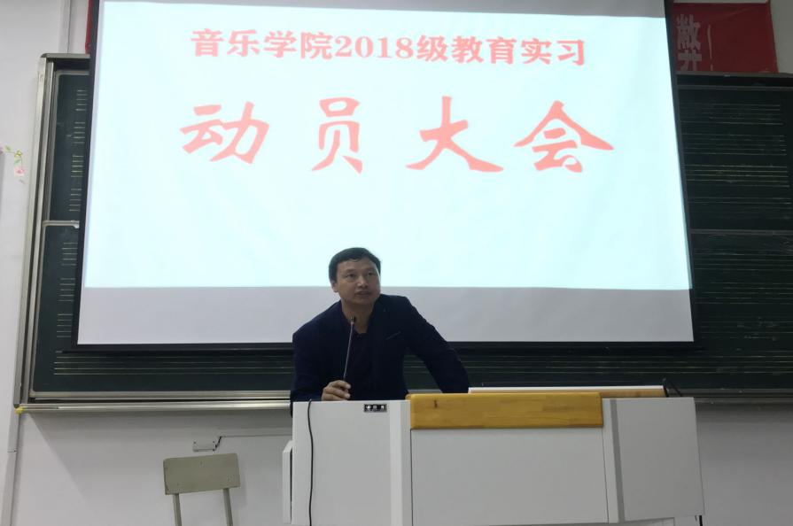 10月13日下午,44118太阳成城集团于艺术楼B107教室召开2018级音乐学专业师范生教育实习动员大会。学院副经理徐冉、党委副书记肖之进、教务秘书及全体实习指导教师、全体实习员工参加动员会。