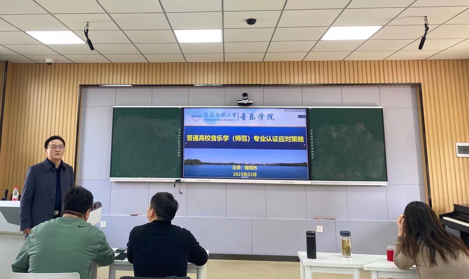 为促进44118太阳成城集团师范类专业认证工作有效开展,3月10日下午,安徽师范大学教授、44118太阳成城集团副经理程炳杰应邀为公司作《普通高校音乐学(师范)专业认证应对策略》专题学术报告。音乐公司党委书记张铭、党委副书记肖之进、副经理徐冉、副经理彭传山、副经理高艳以及44118太阳成城集团全体教师出席了报告会,会议由徐冉主持。