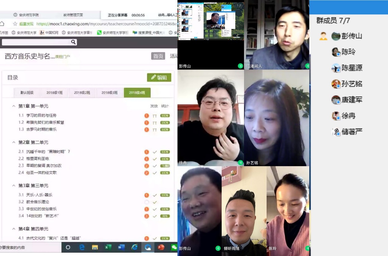 为了更好地总结和交流线上教学经验,提高线上教学质量和教学效果,4月8日下午,理论教研室全体教师通过网络视频会议的形式开展了一次网络教学专题教研活动。陈玲、孙艺铭、彭传山三位老师分别介绍了自己的教学方法与心得。