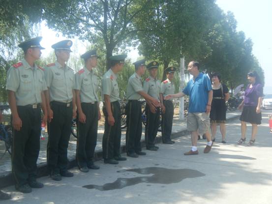 金秋九月,古皖大地桂花飘香,在我国传统节日中秋节来临之际,2013年9月18日上午11时,公司党总支书记刘燕、经理荀安华、副书陈银凤、副经理杨瑾,在新生辅导员的陪同下看望并慰问了该院参训的官兵和学员。