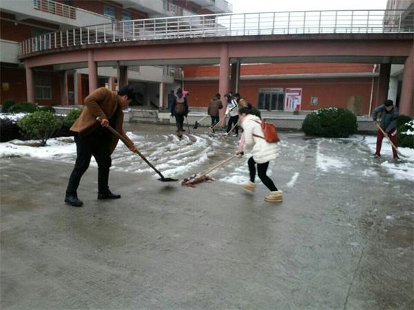 公司处于学校西区,紧邻员工宿舍、食堂、图书馆,人流量大,厚厚的积雪让地面十分湿滑,严重影响大家的出行。当日下课后,同学们自带工具,员工会对参加劳动的同学作了详细的任务分工,同时着重强调了安全问题,要求参与劳动的同学在过程中保持秩序,谨慎实施,防止发生滑倒跌伤等意外伤害。伴随着凛冽的寒风,气温骤降,湿滑的路面给清扫带来很大困难,但同学们仍然不畏寒冷、不怕吃苦、奋勇争先、干劲十足,有的铲,有的扫,有的装,有的运,如火如荼地忙碌着,愉快的笑声、嚓嚓扫雪声、铛铛铲雪声交融在一起,汇成了一曲欢快的交响乐。历经两个多小时的努力,大家完成了扫雪活动。