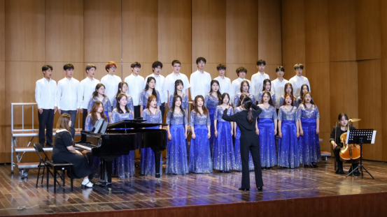3个合唱团,10首合唱曲目、150多名合唱成员……不同风格的“声音艺术馆”一一展现,配合着伴奏、服装、灯光,为现场400余名观众送上一场视听“盛宴”。随着指挥的手臂轻扬,音符倾泻而出,一曲曲歌谣在音乐厅中奏响,观众们或闭上眼静静聆听,或跟随节奏轻轻哼唱,见证学子们的学习成果,感受音乐魅力。