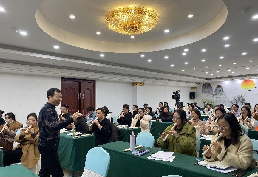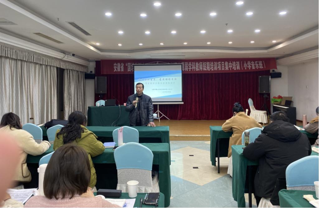 2023年2月9日,2022年安徽省“国培计划”农村紧缺薄弱学科教师短期集中培训项目——艺术(音乐)系列讲座第七场《提升专业素养 落实课程目标——课堂教学乐器(竖笛)演奏培训》分别在小学音乐班和中学音乐班举行,由合肥市蜀山区教体局高级教师吴长生主讲。
