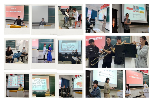 本次课程思政教学大赛,来自声乐、器乐、理论三个教研室的十四名教师分别从各自的专业和教授的学科特色出发,就推动高校思政课从“课内教”向“课外延”,拓展思政课空间,开阔老员工视野,塑造员工的品格,从而在音乐教学中增强员工的自豪感、纪律感等方面展开了精彩的教学演示。在器乐教学中,器乐老师们不仅专注于乐器本身的演奏技法,更从文化背景切入去解读乐曲的深刻内涵,带领着员工们重温爱国主义的旋律,引导员工树立正确的历史观。在声乐教学中,声乐老师们非常注重员工们对相应歌唱技巧的掌握,并结合“四史学习”,提高员工对于歌曲的思想认识,做到与历史故事的共情。理论课老师们则从民族文化背景切入,将“红色文化”的传承与发展融入舞蹈课堂的教学工作。整个教学比赛过程,参赛教师注重发挥员工主动性与教师适时的点评相结合;注重用音乐培养员工的爱国主义情感,增强集体主义精神;注重培养员工的感恩之心、民族文化自信心和民族自豪感,充分展现了音乐课堂在思政教学中的独特作用。