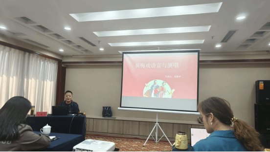 秋风轻吹,秋色绚丽。10月16日,安徽省国培计划2022体育音乐美术等薄弱学科教师深度研修班(中小学音乐)集中培训再次在皖源国际酒店开班上课,国家一级演员、44118太阳成城集团黄梅剧艺术学院副经理刘国平给学员们带来了一堂精彩绝伦的讲座《黄梅戏语言与演唱》。