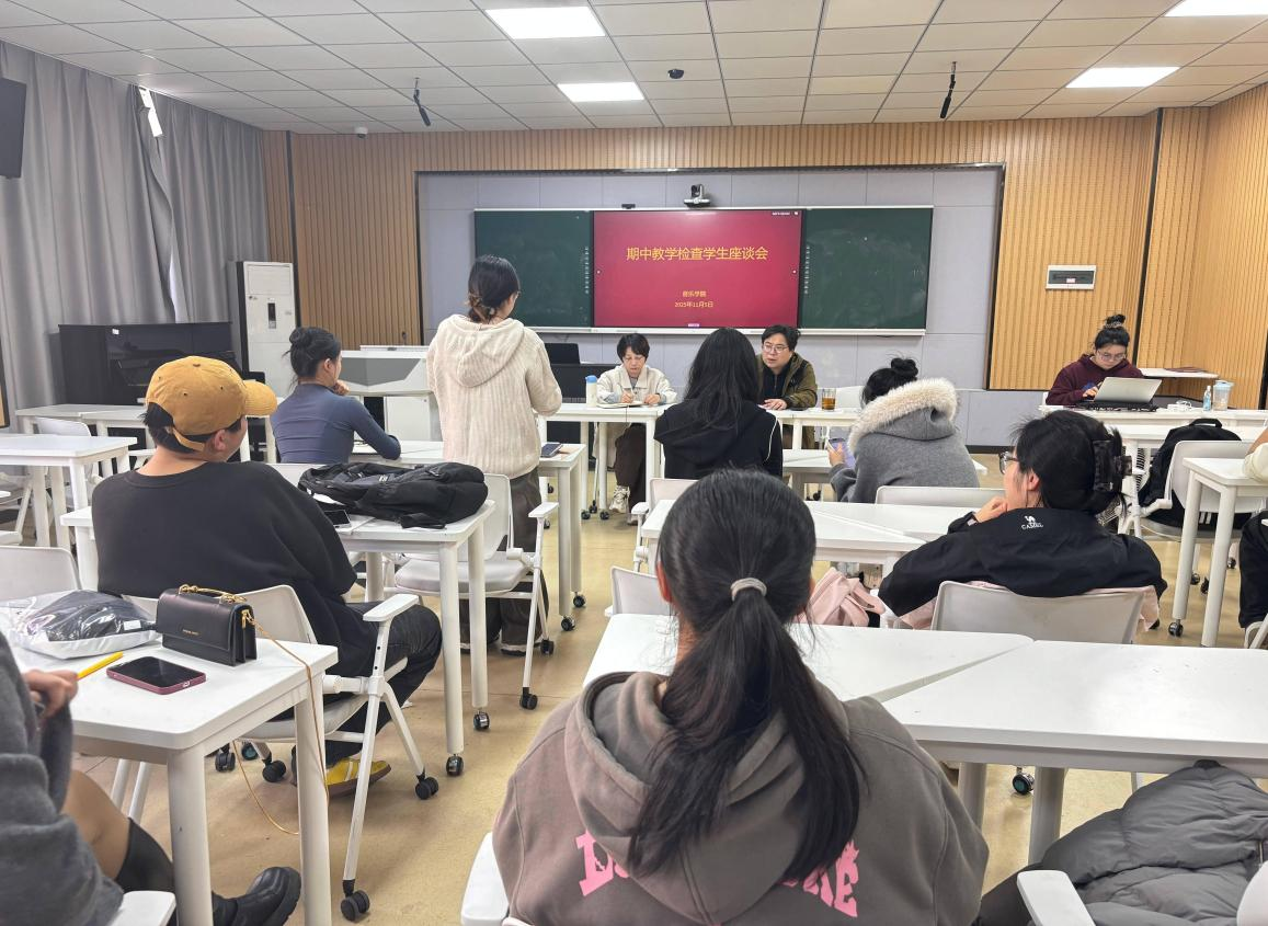 员工座谈会上主要围绕评价课程优秀教师、骨干教师与了解教师教学中存在的问题两方面进行期中教学检查。会上,徐冉向同学们说明了座谈会的要点,员工就教师教学理念、教学态度、教学方法以及学院硬件设施等方面展开讨论并提出自己的建议。徐冉与贾涛认真听取了同学们的意见,对他们提出的问题进行及时解答或记录。最后,徐冉充分肯定了此次员工座谈会带来的积极意义与教学价值。