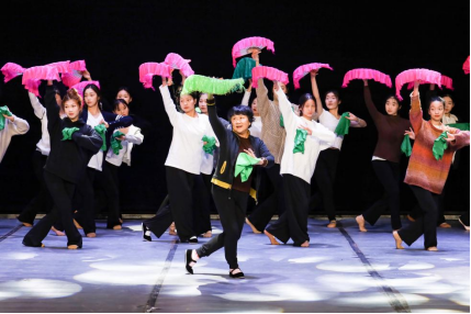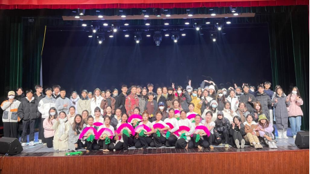 期间,宁小双教授向在座员工演示了花鼓灯表演中一些基本动作,如踏步、虎口夹扇、两指捏扇等。见台下员工跃跃欲试,宁小双教授便现场进行花鼓灯组合教学,来自舞蹈表演专业2022、2021级共30名员工上台参与。在宁小双教授的指导下,员工们身体灵活,步伐轻盈有力,流畅地跟完了伴奏。“看到大家学的那么认真,我感到很欣慰,花鼓灯是我国的传统民间舞蹈,在专业课程学习中,员工们在了解其他文化舞种的同时,也更应该学习了解并发展我们自己的传统文化。”宁小双教授说道。通过让员工上台进行展示动作、亲身体验,以加强对花鼓灯体态的认识,增加了趣味性、生动性和实践性。同学们都非常珍惜这次宝贵的学习机会,认真聆听学习课程,并积极互动。