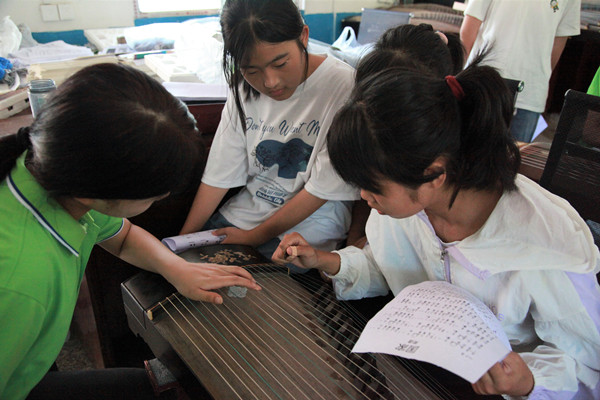 “弹古筝看起来很优雅,我一直很想试试。”作为古筝的狂热“粉丝”,查新越曾经看到表妹学习古筝,内心对它充满了向往,那时的一曲《青花瓷》让她至今记忆犹新,但由于农村缺乏专业艺术教育资源,学习古筝的想法被一再搁置。当得知有机会学习古筝时,她毫不犹豫地报了名。每天训练时,查新越总是提前到达课堂,课下仍在对照曲谱练习。短短数天时间,她便能将一首《南泥湾》完整地弹奏出来,得到“小老师”的夸奖,她感到满满的成就感。