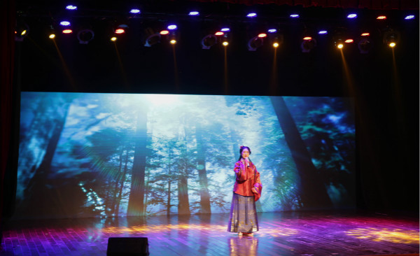 “一月思念如痴如醉,相爷带得佳音归”、“休要愁眉长锁,莫把时光错过,到人间巧手同绣好山河!”,黄梅戏选段连唱《一月思念》、《杉木水桶》、《到底人间欢乐多》,以及黄梅歌《山野的风》,妆容精致、嗓音清润、表演娴熟,让大家再次品尝了精彩的黄梅风韵。钢琴独奏《狩猎》展示了音乐学专业大一新生娴熟的钢琴演奏技巧,《爱你》为大家带来了流行音乐的精彩。